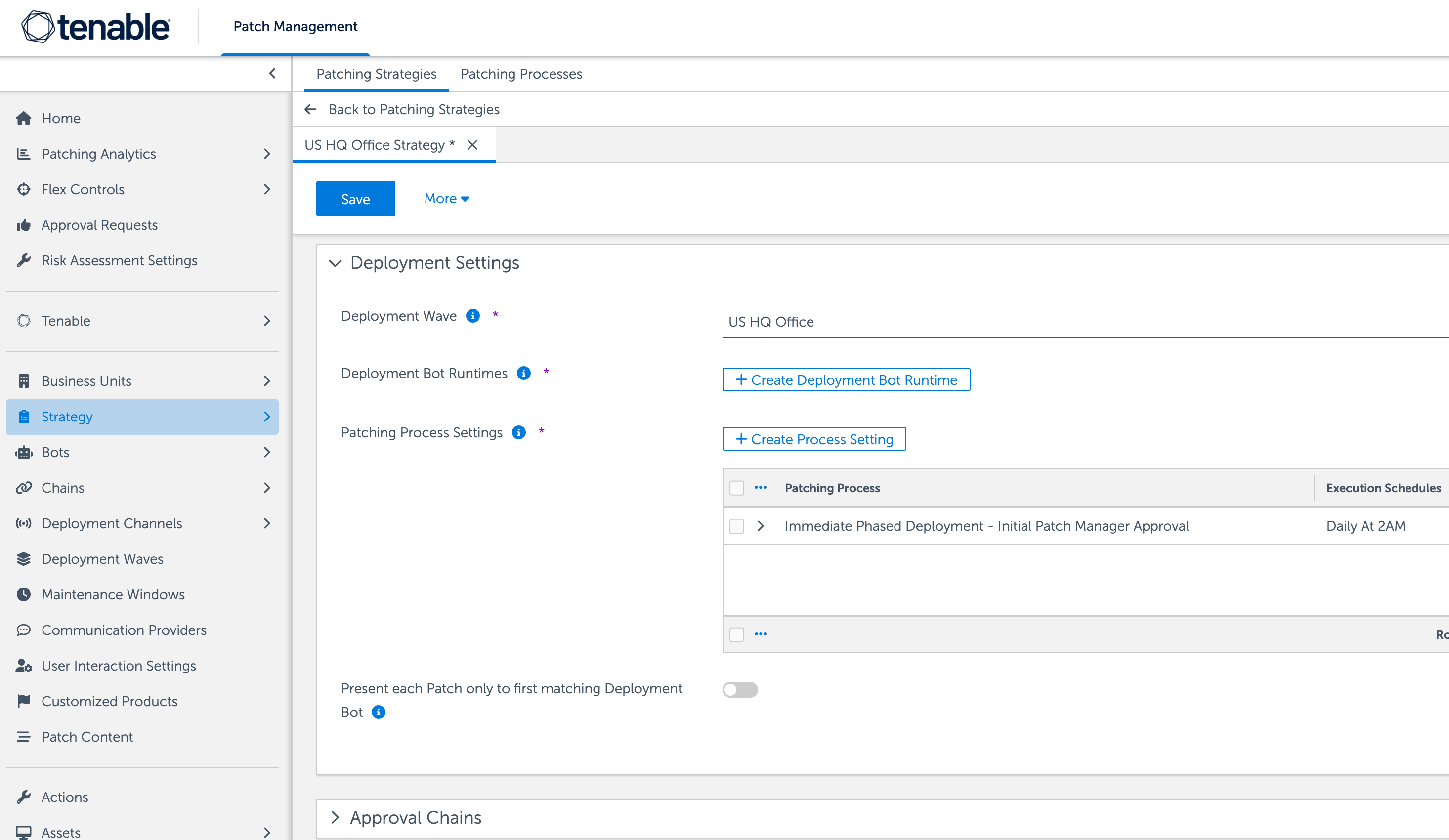Tenable Patch Management 改变了 IT 团队实施修复工作的方式。通过自动打补丁功能,企业可以设置后无需再处理补丁部署,而不是逐个单独打补丁。