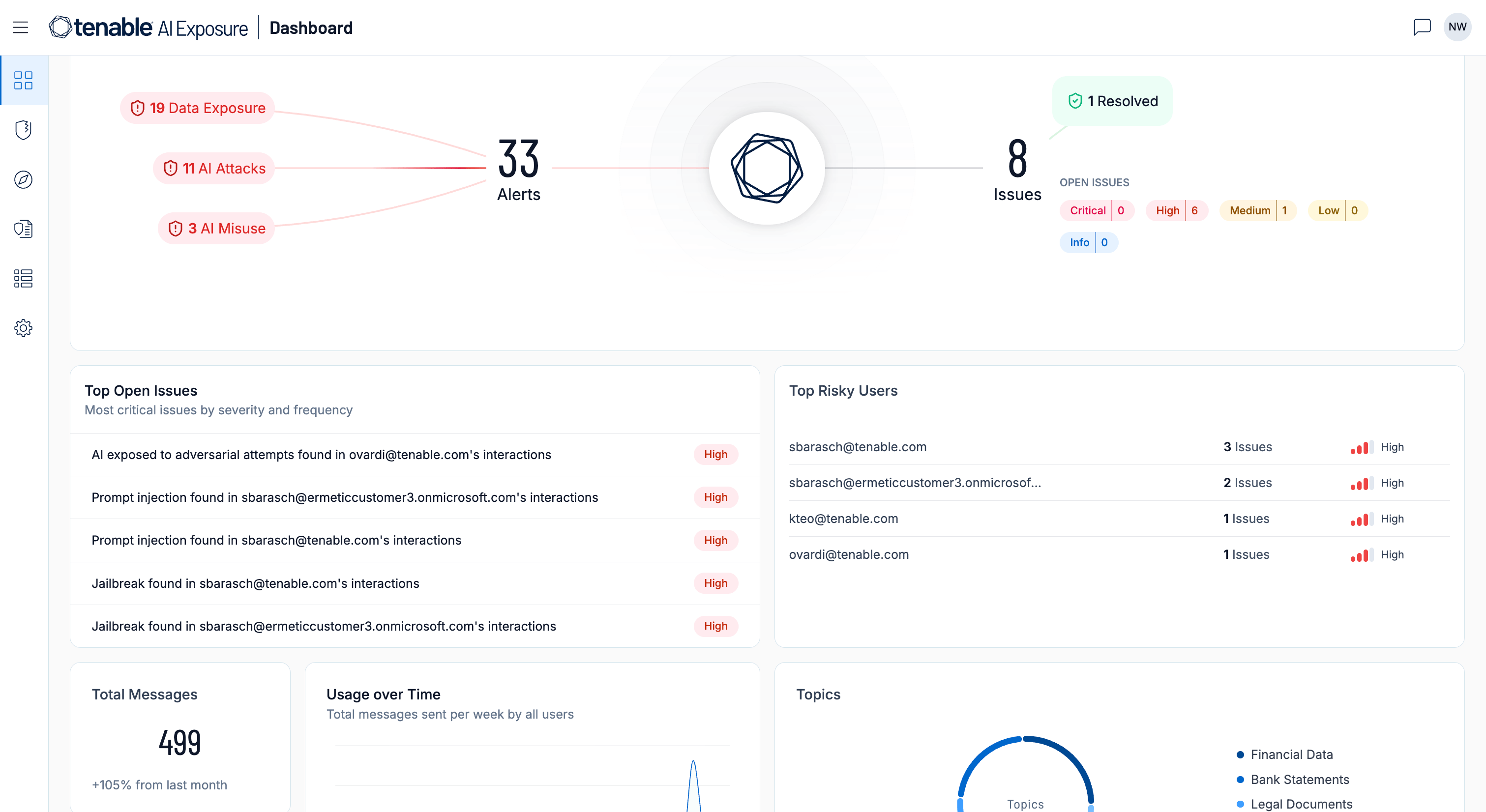 AI 风险和可见性管理: Tenable AI Aware 是一款主动型解决方案,助安全团队清晰掌握其环境内的 AI 使用情况及开发动态,帮助检测未经授权的 AI 使用情况、发现漏洞,并管理整个企业范围内与 AI 相关的风险。