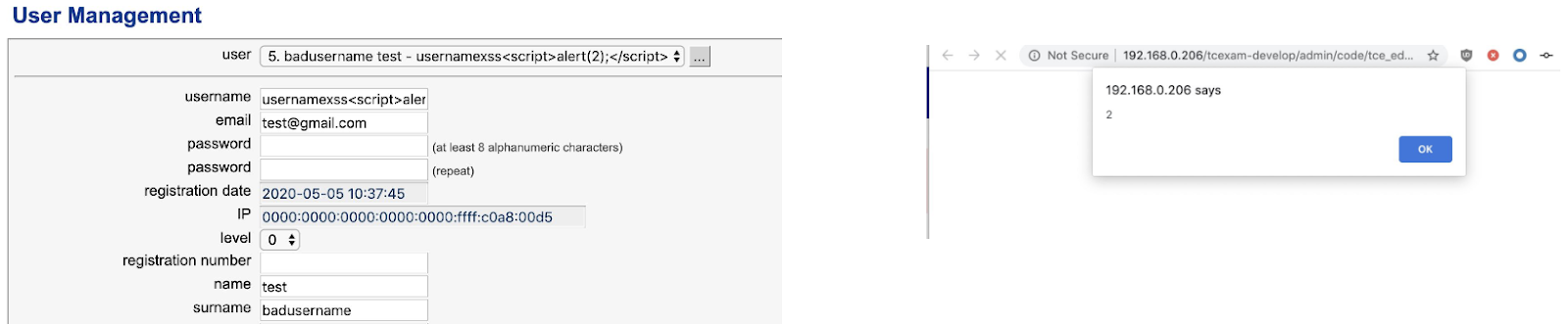 Please note that the IP address would have to be changed to target the “victim” TCExam application.