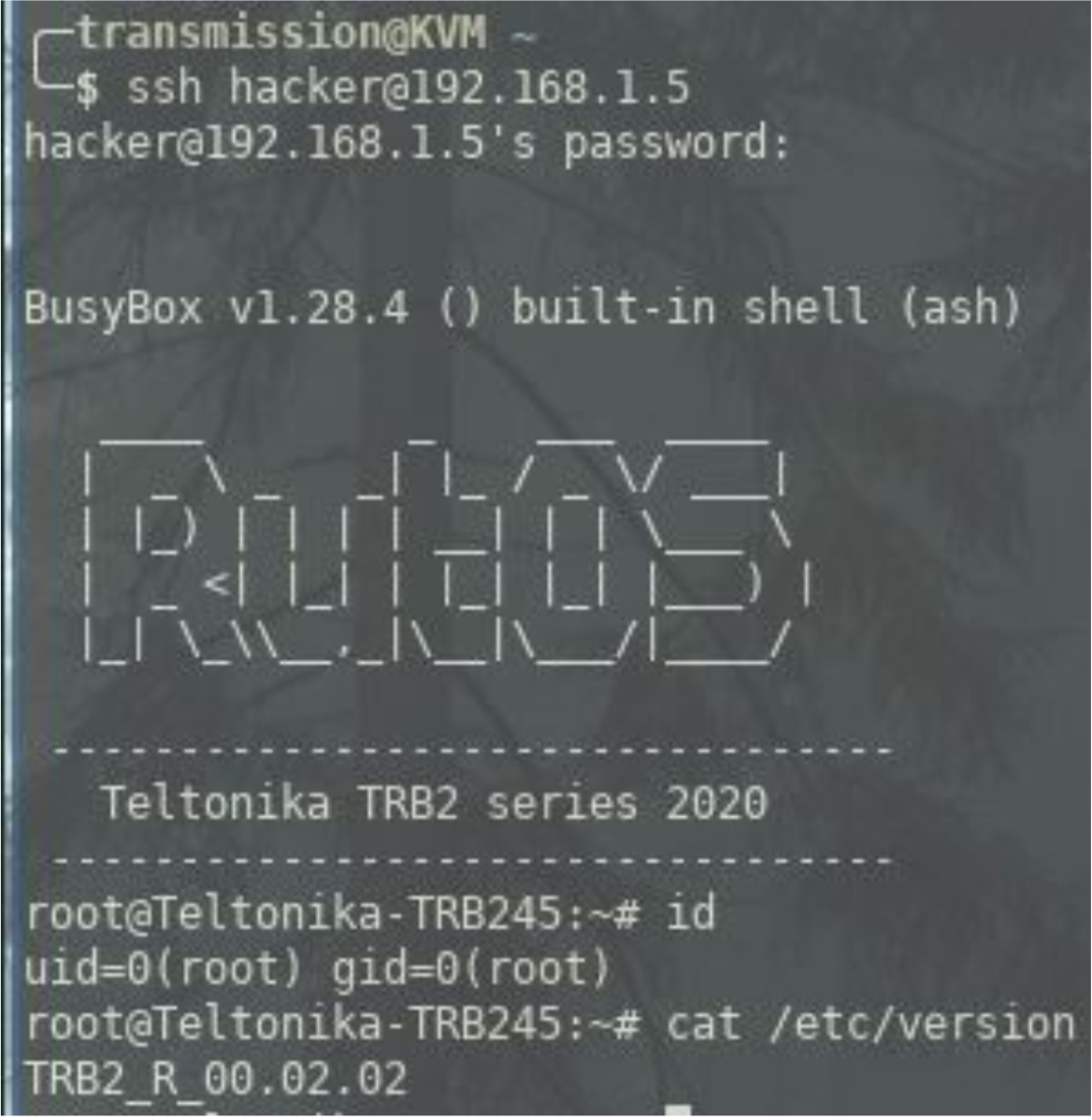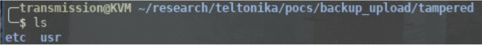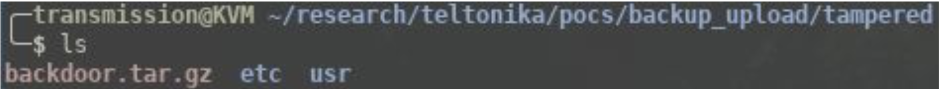 However, the checks to verify the above are insufficient from a security point of view. The only check to verify that the archive is from a Teltonika device is to check the output of 'cat /etc/version', as proven in the below proof of concept.