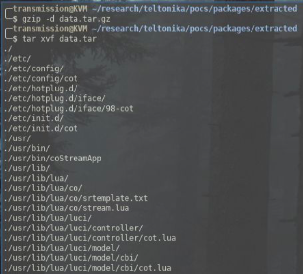 We decompress this and find a tar compressed archive.