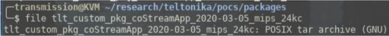 As an example the tester downloaded one of Teltonika’s packages from their Wiki (https://wiki.teltonika-networks.com/wikibase/images/3/3b/Networking_trb2xx_manual_packages_cot_0.0.1.ipk).