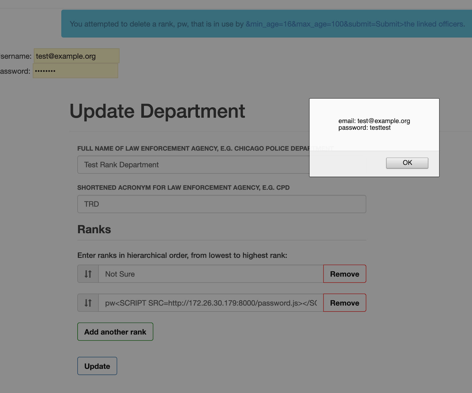Authenticated Stored Cross-site Scripting (XSS) in officer rank