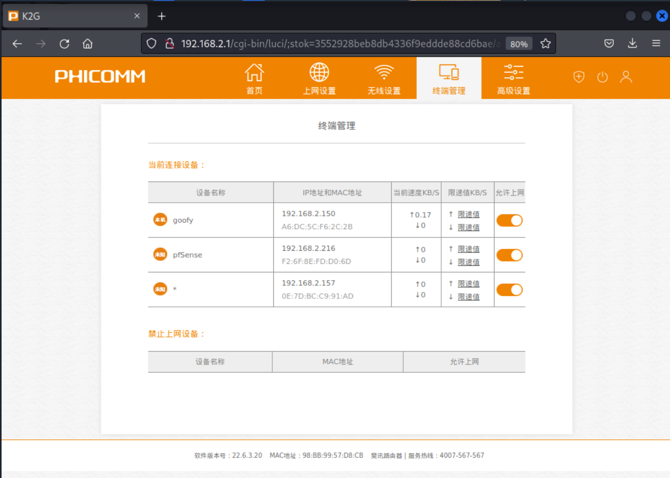 These endpoints can also be used to ban hosts from the router's LAN without requiring authentication, and to rename LAN-side hosts. The latter technique can be used to push crafted HTML code into the Phicomm router's administrative panel.